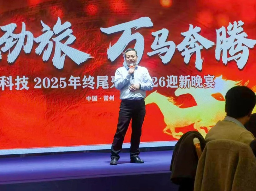 年会在激昂的音乐中拉开序幕。公司总经理黄振华先生首先登台致辞。他回顾了过去一年公司在市场开拓、产品创新与客户服务等方面取得的扎实成绩。黄总对所有员工的辛勤付出表达了诚挚感谢,并特别向一直以来支持捷是科技发展的合作伙伴、客户朋友致以深深谢意。他表示,这份荣誉属于每一位携手同行的伙伴。最后,他鼓励大家在2026年继续秉持“诚挚互信、合作共赢”的价值观,与各方伙伴同心协力,共创更辉煌的未来。